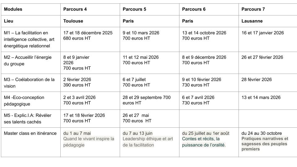 - Renforcer la posture du facilitateur en explorant les dynamiques énergétiques et relationnelles